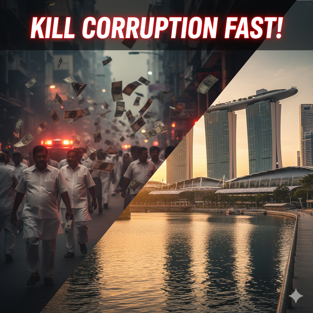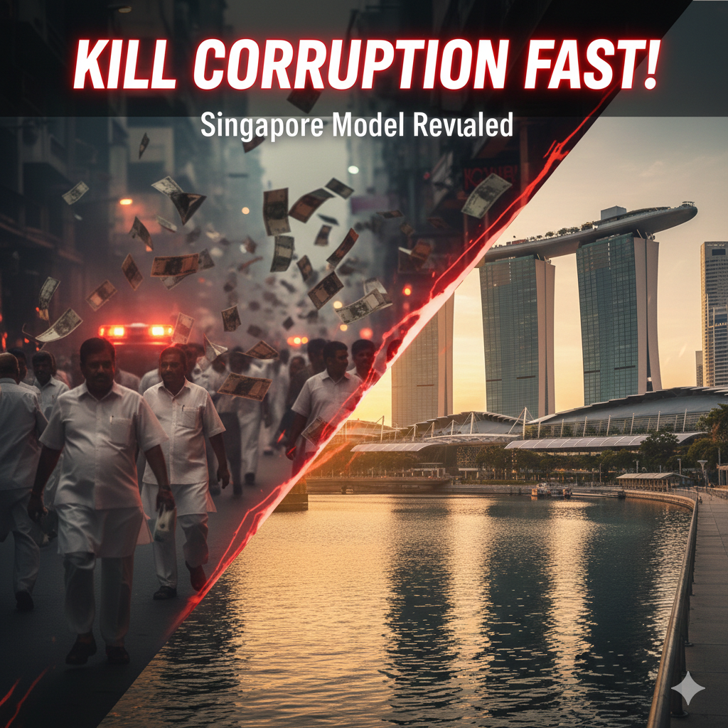 India has struggled with corruption for decades, yet despite reforms and promises, it still ranks poorly on the Global Corruption Index. Meanwhile, Singapore transformed itself from one of the most corrupt, slum-ridden countries in the 1960s to one of the cleanest and wealthiest in the world. This article explains how Lee Kuan Yew eliminated systemic corruption through strict enforcement, competitive salaries for ministers, transparent institutions, and disciplined election spending. More importantly, it analyzes whether India can truly learn lessons from Singapore to reduce political corruption and accelerate economic growth.